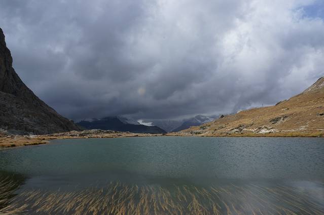 我们到达Riffelsee的时候,云层变得更厚了,马特宏峰只能看到三分之一。我们幻想着云可以快速散去,等了半个小时,云层反而更厚了。虽然没有拍到倒影,但我们依然收获了不错的照片。