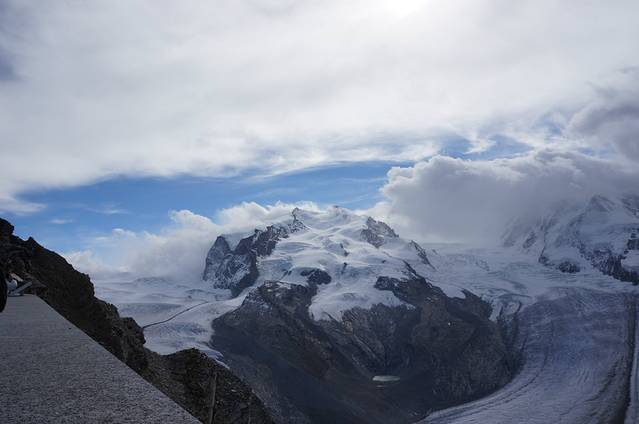 我们到达Gornergrat的时候,马特宏峰的山顶被云遮住了,画片正好填补了缺失的山顶。