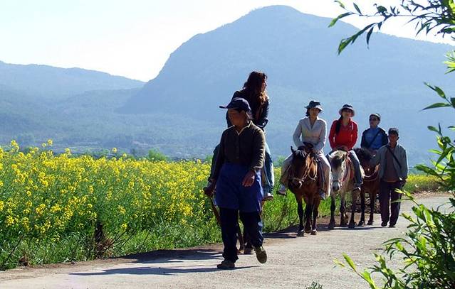 丽江古城出发,专车接送,车程约15分钟左右到达拉市海国际湿地公园.从和谐马场骑马骑马出发--田园风光—纳西族村寨——茶马古道——青松林——木氏马场—徇情洞—情人湖—关马谷—望海坡—湿地—---果园---划船--花海人间)(说明全程我们安排一天游玩结束专车送回丽江古城或束河古镇。