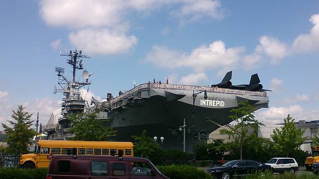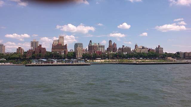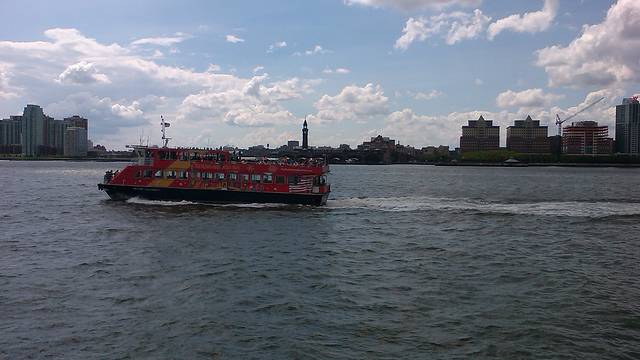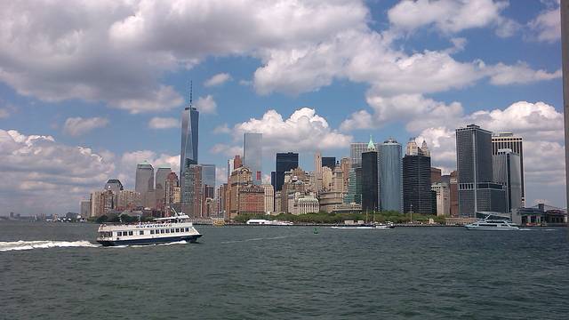 起程开始大苹果市的旅行,首先得找到离酒店最近的Citypass实体票兑换点,跟着google导航走过几个街区,老远看到了一艘航空母舰,它把我们吸引到了哈德逊河边上,参观一番航母外景后,继续寻找兑换点,很幸运没走几步就到了,这里还是自由女神像游船码头,换好Citypass实体票,同时换了下午1点半的游船票,就近找地方等候并休息。这里说明下Citypass通票,是前天晚上淘宝上淘的(这也是美东之旅最后需要提前预定的东西了),来纽约游玩买此通票是最合算的了,共六个景点,去有些景点无需排队即可入内,有些只需换票即可,很方便快速,还可以省下40%左右的费用。淘宝上货比三家,最后选了一家既出票快,又价格实惠的卖家成交,随后他们会将电子票发至邮箱。由于跟国内有时差,只能凌晨交易,我们凭打印好的电子票兑换即可。