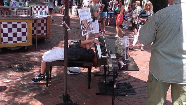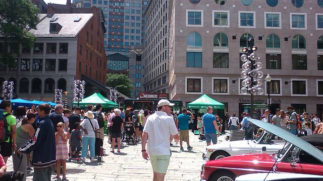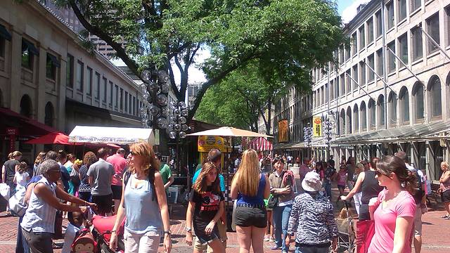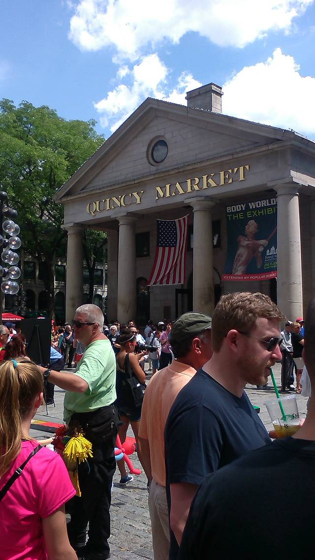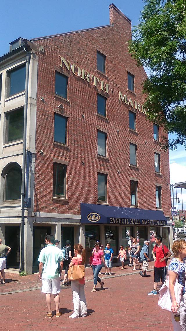 和昨天一样,出门已经11点半了,今天就随便逛了。先到酒店附近的昆西市场(Quincy Market现在已成为波士顿观光必去的景点之一)兜了一圈,市场的中央建筑内有许多的美食摊位,这是波士顿的小吃一条街,里面有很多特色小吃,由于刚用过早餐,就先走马观花一下。