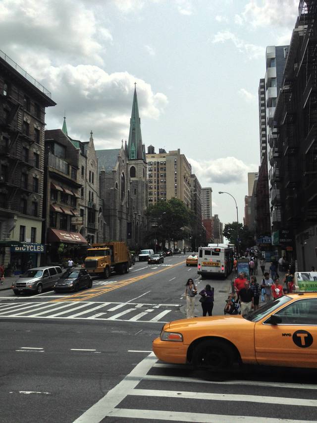 差不多到提车时间了,步行20分钟左右到达Hertz提车点,排队等候,办理完租车手续,在出口处等待工作人员将车提出来。这次又是一辆白车,是道奇的,配置没有前一辆先进,google到酒店接朋友一家并提行李。纽约的交通很堵,还有很多one way,只能慢慢开了,终于到酒店门口了。为了赶紧逃离这个拥堵地,直接导航woodbury的酒店,曼哈顿之旅很快结束了,遗憾的是没去华尔街和Chinatown。