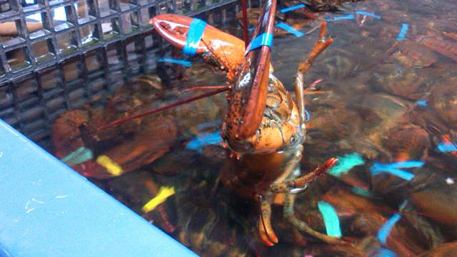 跟朋友一家别过后,我们去了昨天那家龙虾店,其实到波士顿吃龙虾是必须的,这家店生意很好,排队等候时看到一只超大的龙虾,钳子有老公的手掌两倍大,天啊,第一次见到这么大的。排了十五分钟终于轮到我们了,点了每人一个,再来了份蟹腿肉,大概100刀,比国内便宜哦!吃龙虾有专用工具,用这工具吃很方便,龙虾肉很美味,每人一个吃的很撑,最后取肉打包。
