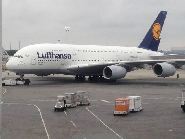 德国汉莎航空,儿子说这是世界上最大的飞机,呵呵!