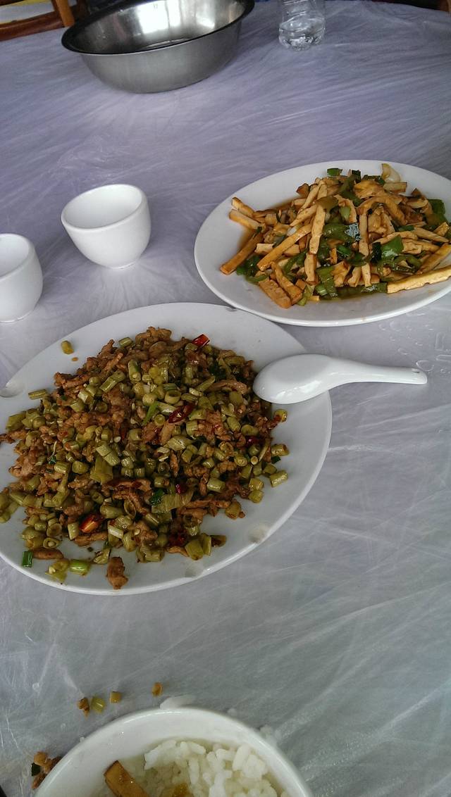 说了是暴走,这两个地点一个上午就逛完了。 中午在袁家界吃的午饭。袁家界有很多饭店。自助餐30一个人,菜式不多。我们随便找了一家点了一个素菜和一个荤菜120。吃饭还是蛮贵的。