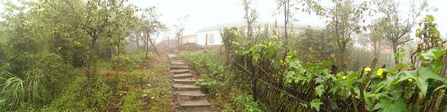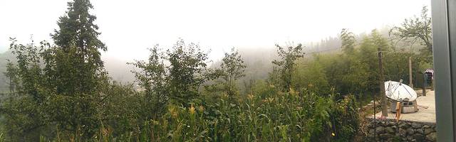 下了一个晚上的雨,山里都是浓浓的雾。从丁香榕出来的人也比较少了。