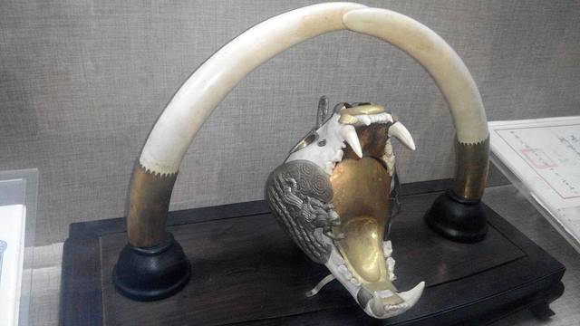 臣僚进贡蒋家父子的贡品,全部是整块象牙雕刻。现在观摩,令人思忖:是否也暗示了蒋家王朝的对民众的青面獠牙?