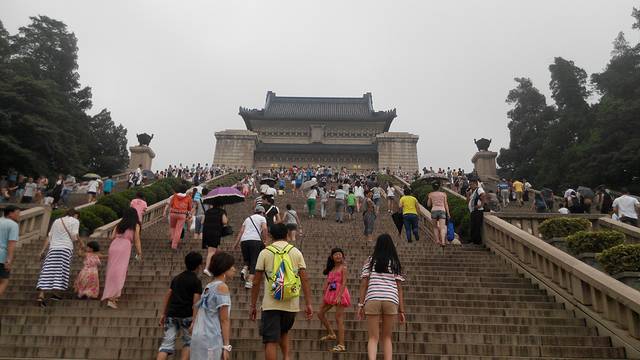 俯首拾级而上,感慨于中山先生翻天覆地的伟大。凝目高处的建筑,俨然一位巨人蹲视钟山风雨。