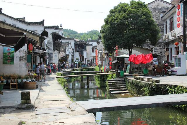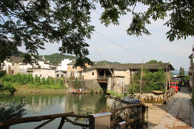 早上6点半起床,7点下去吃早饭旅馆老板娘推荐了3个景点--思溪延村和李坑,前者是他们当地人认可的,后者是游客们推崇的。我们8点多出发,原计划先往里走去卧龙山,商量后觉着刚从庐山出来,这个景点肯定看不出感觉,果断折回(事实证明这个决定很英明),往出走去思溪延村--李坑。大约半小时的车程就到了。买景点门票后开车进村,在门口被村民拦住问要不要导游,20元/次,咨询过景区工作人员确定不是骗人的后决定请了,转了一个多小时,听导游讲典故传说,挺有意思的。结束时给导游费,道谢时导游还不好意思,说不用谢,本来你们还没打算请呢,言外之意很感谢我们照顾她生意,真是朴实的村民。出村时遇到一个老太太拦车,原来她要坐公交去县城,可是太热了走不动,招呼老人上车,捎到车站,告别。我们继续下一站--李坑。大约不到半小时的车程,买票进去,很失望,没什么看的,庆幸老公有先见知明(他认为这些景点雷同,看一个就行了),一个多小时逛完离开。出来后老公说他在等我们时和外面的景区导游聊天,认为我们没去卧龙谷是对的,心情好好,呵呵。彼时12点多,找地方吃过午饭,出发去黄山。