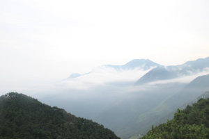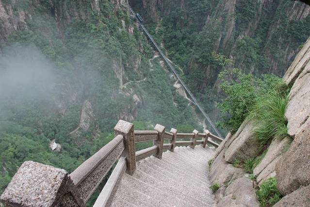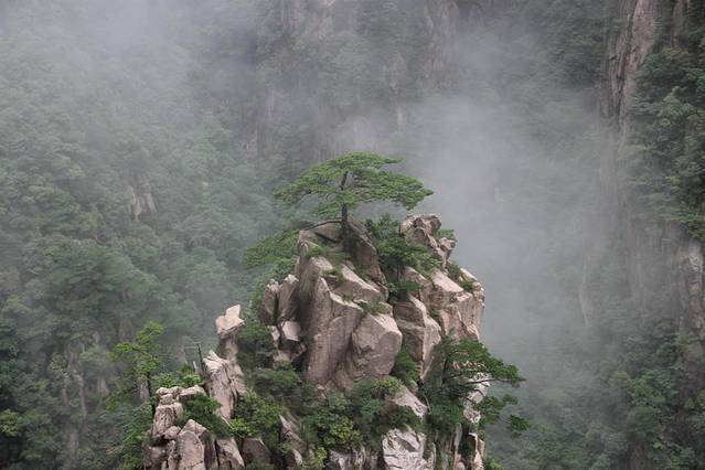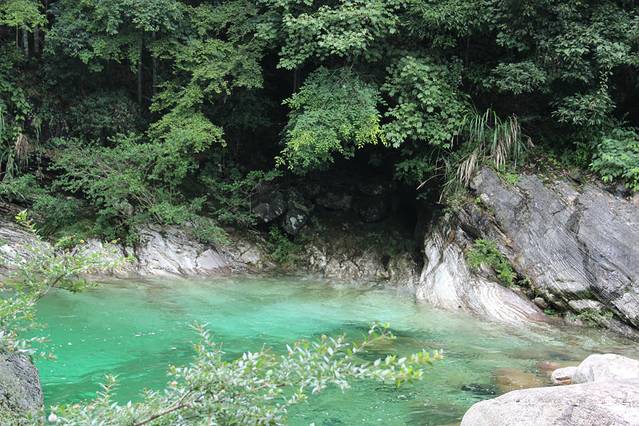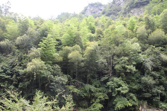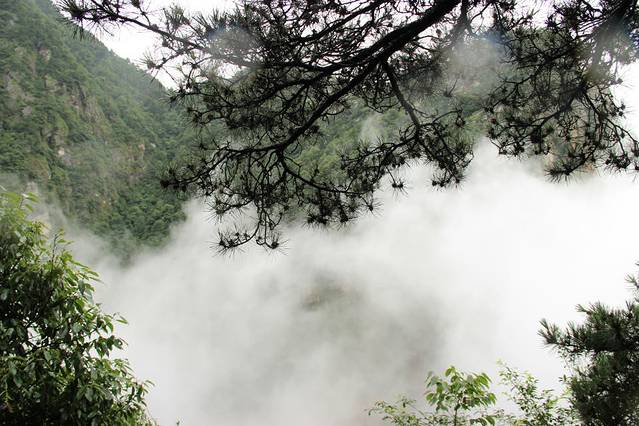 昨夜下了好大的雨,7点半起床时还没停,于是宾馆里吃早饭(自备方便面),8点多退房。雨基本停了,准备出发时导游来了,很不好意思得解释昨天我们给的导游费太多,今天如果想去石门涧的话他可以少收费用或者不给都可以。本来今天就是打算随便转的,于是我们一起出发。这条线是西线的末端,我们的路线是三宝树——黄龙潭——乌龙潭——石门涧,坐缆车过去,拾阶而下,可以看到"横看成岭侧成峰,远近高低各不同"的景色原型。导游在入口处等我们。我们一直下到山底,大约2个多小时从谷底返回。非常累,但是沿途湖光山色,曲径通幽,穿行其间,很是惬意。特别是返回时遇见野生猕猴,看人与动物近距离和谐相处,别有一番感触。又去黄龙寺参观了一下。
