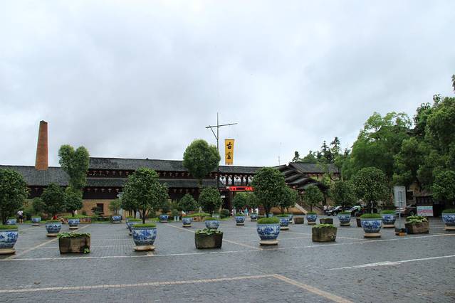 昨天晚上下大雨,雷声大做,吵得睡不着。7点多起床,依然泡面早餐。想着今天行程宽松,并不着急,快9点时出发去古窑,谁知又找不着路,却把我们带到昨天经过的批发市场,天意使然,买点瓷器餐具回去。11点出发去古窑,昨天在驴妈妈网上订了票(85元/人,同程有1元抢票的活动,我没参加上),取票后进去游览,我们都觉得这个价位划不来,1个多小时就转完了,真没什么看的,倒是又买了两套茶具。出来后去浮梁古县衙(离高速入口10多公里,顺便一去),本来在网上订了35元的票,但是忘了去旅行社取票,在门口看看空荡荡的大门,真心觉着原价进去不值,拍张照片留念行了。此时已经快2点了。景德镇的行程提前结束了,出发去婺源。
