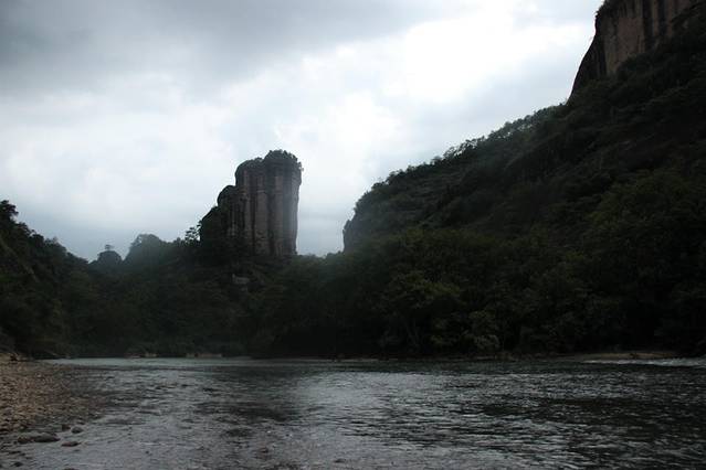今天到9点多才起床,用老板家的洗衣机把衣服都洗了晾好。忙完了已经11点多,老板知道我们累了,说现在去游玩太热了,也划不来买门票(其实现在携程网有1元秒杀景点门票的),不如再晚些时候等景区工作人员下班了,他带我们开车去,走快一点逛逛主要景点,还省了买门票的钱。我们觉着这是个不错的主意。于是邀请老板和我们一起去找家当地人喜欢的餐馆吃中饭,餐毕老板买单(垫付,他担心即使是他带我们去的,一旦我们买单价钱还是不一样,他买单就是当地人的价钱)。饭后老板听说我们要坐竹筏漂流,推荐去橡皮艇加??套餐价140/人。于是开车出发,老公有恐高,没去,和老板在底下等我们。我们玩得很尽兴,他们等得也挺辛苦。出来后去订了晚上看《印象 大红袍》的演出门票,160/人,我们在窗口按全款额付款,老板把差价退给我们,过几天景区就把这部分钱打到他账上。