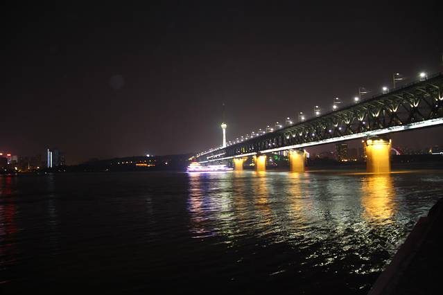 8点多起床退房,简单吃过早饭后出发去滕王阁,大约一个多小时的路程。进入停车场,果如网友所述收费很贵25元/车,和另外一车主一起力争,收费员带搭不带理,一副爱停不停的样子,无奈只能照付。买票进去参观,虽是重建,依然气势不凡 ,只是每层都是卖纪念品的,让人觉得就是怪怪的。临近12点时突然天降暴雨,狂风大作,在里面等雨小点时出来,在雨中驱车离开,途中没找到中意的餐馆,干脆直接驶向武汉 。经过约5个小时的车程,我们到了昨天在“去哪儿网”定的宾馆,停好车,办好入住手续,出去找地方吃晚饭。我们的住处就在江边,临江而行,欣赏江景,远观武汉长江大桥巍峨雄姿,看武汉人民在临江路上载歌载舞,戏水弹唱,其乐融融。约半小时后找到一个夜市,简单吃过后又沿江散步回宾馆休息,走到住处时恰逢“晴川阁”号返航。