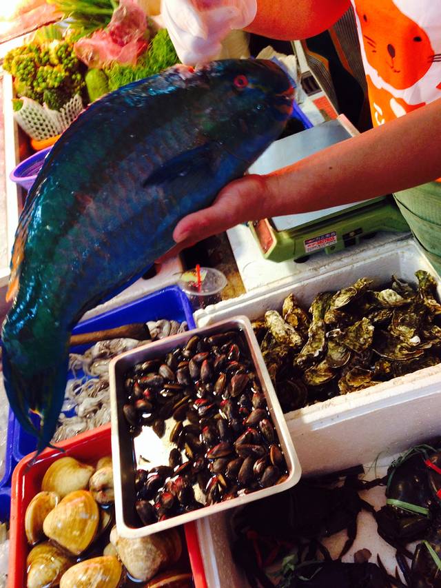 上午继续在海生馆参观游览。由于下雨,原定的礁石探险改成另两个馆的导游服务。中午离开后包车前往高雄。途经万銮猪脚用午餐,果然名不虚传!到达位于美丽岛捷运站附近的“住酒店”。晚上步行十分钟去附近的“六合观光夜市”。六点半到,可是去得早,店家还在陆续摆摊、准备食物。
