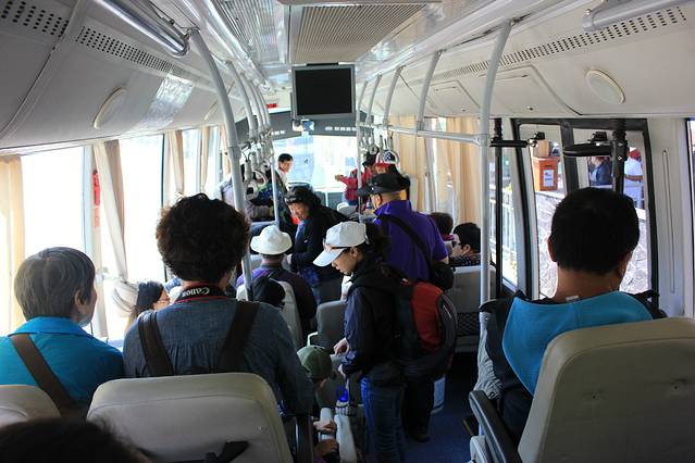 从天池下来,可以免费坐环保车去长白山大峡谷,乘车大约10多分钟,一路也是兜兜转转的山路~ ( ื▿ ื)