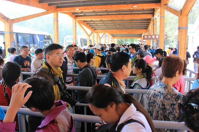 抵达长白山景区的第二天早晨,早早就起来了。本以为时间够早了8点左右,结果到了景区大门口,发现太多的人比我们起的要早很多。