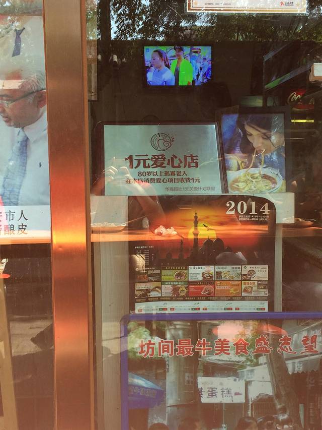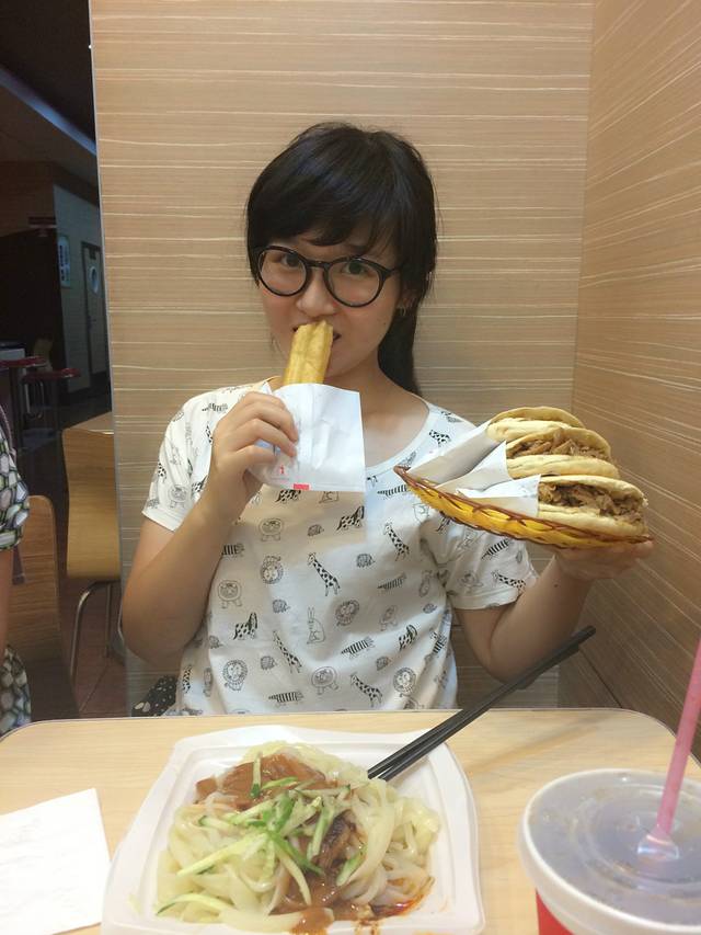 入住很简单,很快就进了房间放好东西就出门吃饭,决定随便吃点什么,恰巧街对面就有一家听西安同学说过袁记肉夹馍,是连锁,于是吃晚饭咯