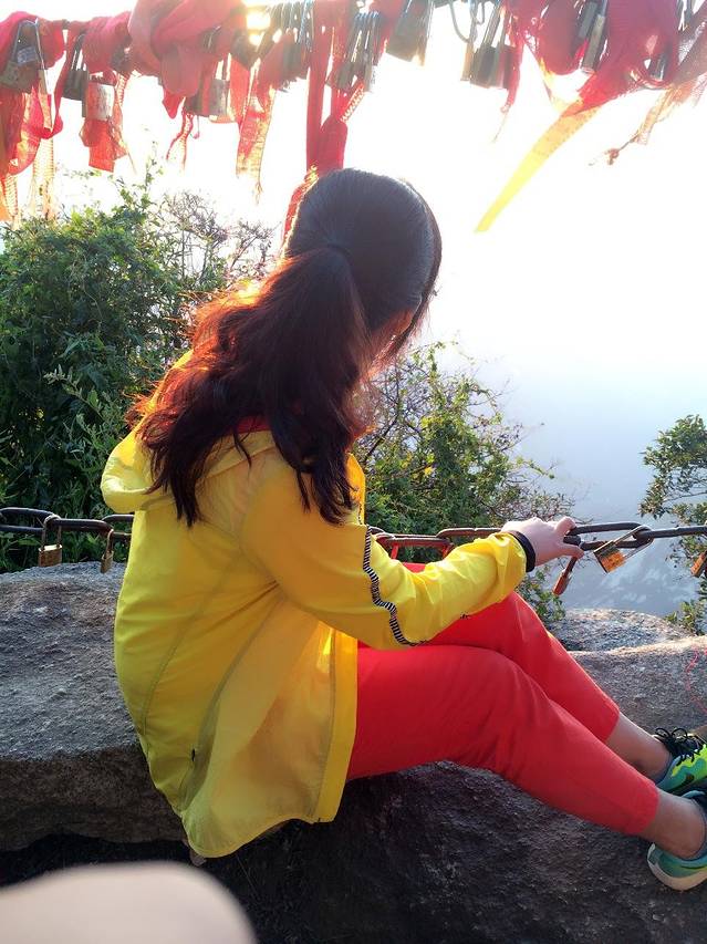 我是在山下的厕所换的长裤,一开始是很热,可要想着到了之后还要等那么久,特别冷。我们去的那几天是西安最热的时候,在山上还是冷得不行。身体好的外套就不用太厚,背在包里或者系在腰上。所有以不累赘为目的安排你的衣物。