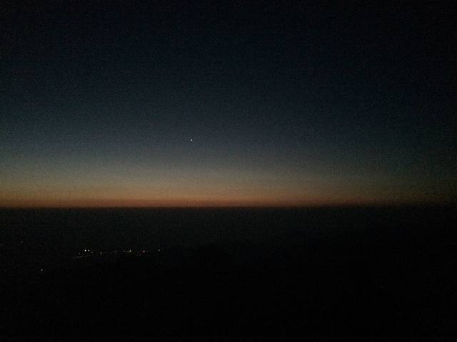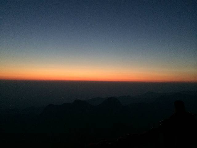 按照司机说的话,四点半多一点走到观日出台,已经有很多人了,灵活的找到一个好地方,可以坐着,又被前面坐着的人挡着风但视野又是开阔的。很幸运。守候着看最后一颗星星消失不见,查了一下,那好像是金星。然后太阳渐渐升起,很多人欢呼,因为实在等得太久了。感觉这种心情没办法用文字描述出来,需要您自己去体会