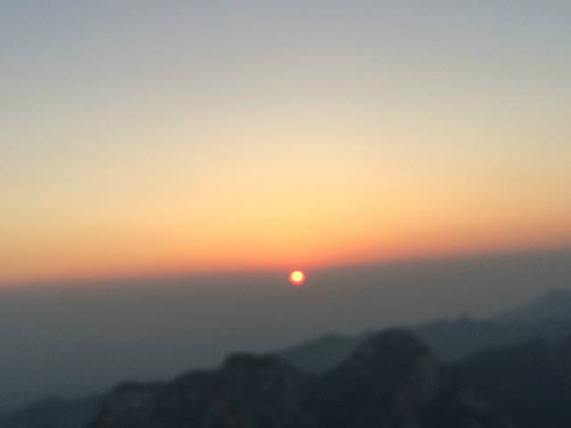 *这里告诉夜爬华山的小伙伴们,如果不是在山上定了住宿,跟我们一样计算好时间爬上去等一会儿就直接看日出的,别上去太早啦,气温又低,当然你要是爬得慢又另外说。所以我们阴差阳错的时间刚刚好。