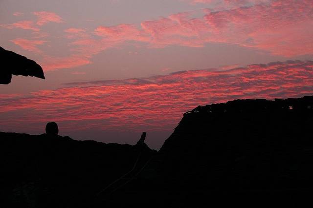 但我却未打算下去,我要等着拍夕阳落照。我一向很喜欢拍夕阳,它虽不比朝阳那么有生气,光芒四射,但它像足了一个老者,在诉说那一个个被人们遗忘的故事。在这有着千百年历史的古寨,这里的夕阳,有着不一样的美,厚重且深沉。等到六点多,拍了照片之后也算遂了愿,于是便一路开开心心地下山去嘞。