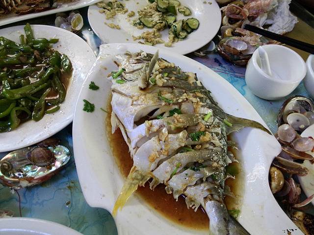 吃:本次共吃了三顿,第一天中午8个菜,其中4个海鲜,一瓶啤酒,共350元。晚上6个菜其中海鲜3个菜,啤酒两瓶,铁板鱿鱼7根(10元一根)这个鱿鱼很大,味道很不错,一共290元。第二天早上早饭5元油条(9根),两碗稀饭,5碗海鲜面条,一共49元。正餐都在渔家吃的,老板做海鲜的味道真的很不错,我发现在他家吃海鲜的人很多,晚上去迟了,还没位置。早饭是在外边吃的,感觉很不划算,味道一般。