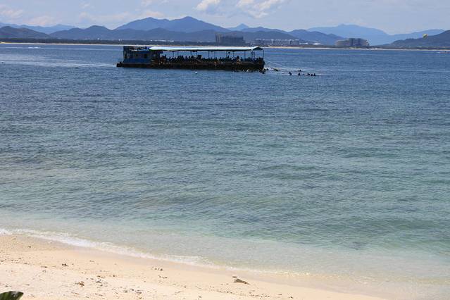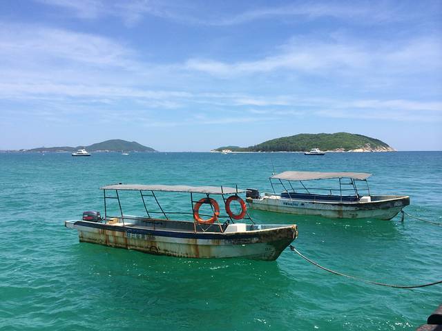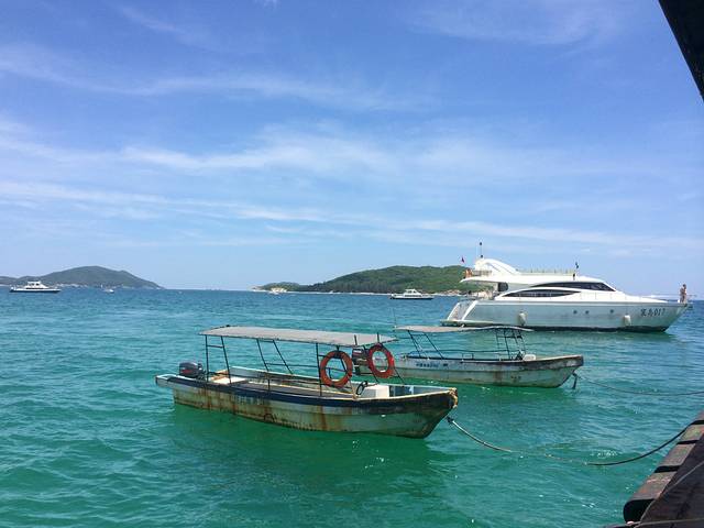 蜈支洲岛,风景真心不错,电瓶车一定要做120元的环岛游,是步行不能到达区域,风景绝对一流,潜水有岸潜和船潜还有VIP1小时潜水,网上都可以定,比现场便宜挺多,推介船潜也就是珊瑚潜,可以购买10元鱼食和20元一次性呼吸嘴,不过我们啥也没买,用原装的,教练在海水里涮涮就咬上了,有点咸哈哈。由于潜水不让带手机相机,故无照片,水下有专门拍照六张照片加五分钟视频不到300块。
