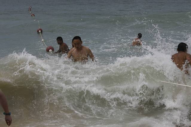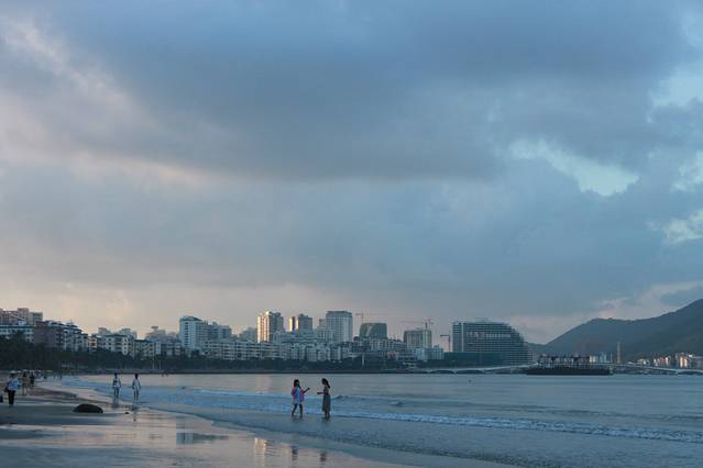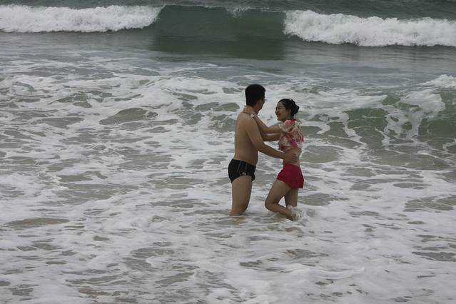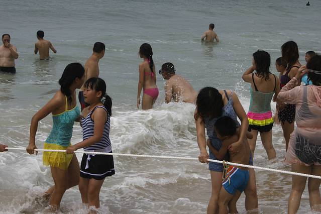 大东海,浪大有漩涡,外国友人多,裸晒事发地。