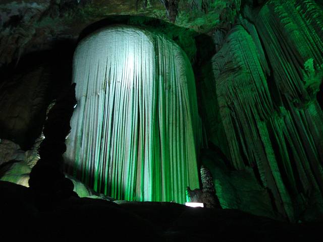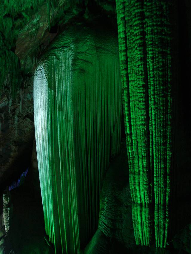 美图,先睹为快。芙蓉洞内最抢眼的银丝玉缕。像一块巨大的瀑布,跌落千年,定格永恒。它没有飞流直下三千尺的壮丽,但是在它的身上,你能看得出时间原来流水可以静止成永恒。
