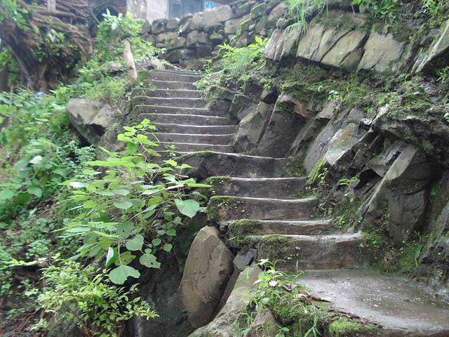 石阶而上的小镇一角。