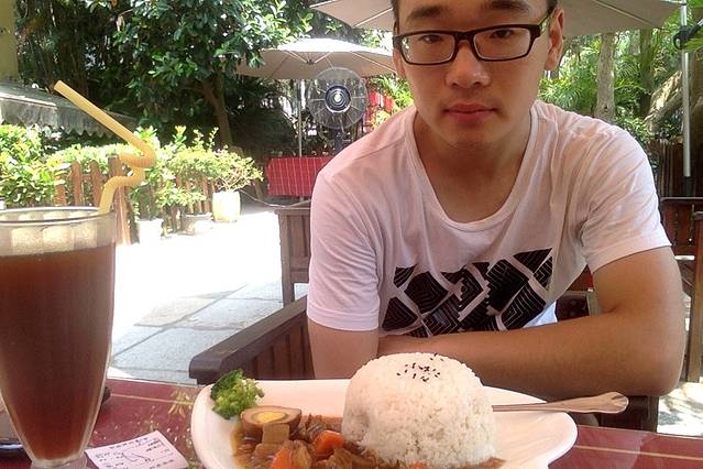 不知不觉已经是午餐时间,正好路过一家叫喜林阁的店。外围店桌椅搭配很是符合的口味,风格又点像香榭丽广场外围露天咖啡的感觉,纯法式风格。落座,点餐,码字,一样不落。我点了一份意式牛腩和一杯招牌酸梅汤RMB70。不过说实话他家的酸梅汤倒么喝出什么特别,倒是那份牛腩饭却像是用心做的,只不过牛腩量不是很足。不过在景区倒是情有可原了。