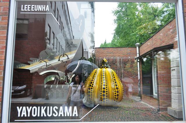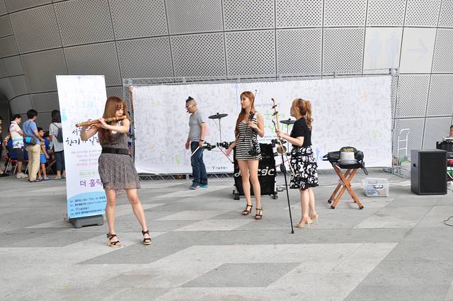 来到这里, 觉得画面很熟悉, 想起曾经在roommate 里面看到过这里. 刚好碰见星星在这里搞展览, 就花痴地进去看了一下. 东大门最出名的当然就是这里的服装采购中心. 其中doota 被称为最值得去的mall. 可是, 八月正好是doota大装修停业, 令我们抱憾.