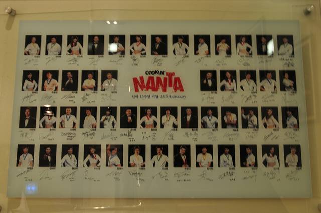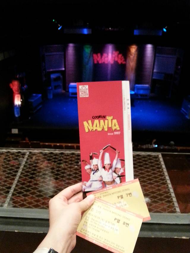 再次来到这里是因为要来看乱打剧场. 乱打是一个韩国出名的音乐剧, 走遍了世界很多地方. 之前做的攻略说这个音乐剧去韩国一定也好去看, 我这么俗, 也只能跟风去看看了. 因为本身没什么音乐造诣, 本着看一看的心情, 我们也去了. 这个音乐剧, 一天只开两到四场, 幸好我们那天是星期六, 开了四场. 我们提前请旅馆老板帮我们打电话询问有没有票, 回答有. 我们就马不停蹄地赶去明洞买票了. 价位有三等:40000won/人, 50000won/人, 60000won/人. 因为我们不是土豪, 也确实不是很热爱音乐剧, 所以我们买最低一等, 不过位置也还不错, 在二楼的最前一排正中位置. 看完以后, 我也真心想推荐说值得一看, 整个剧大概一个半小时, 全程无尿点, 处处有笑点. 演员们很卖力地表演, 剧中有跟观众交流时间. 退场的时候, 我很坦白地呐喊了一句"ka ji ma".