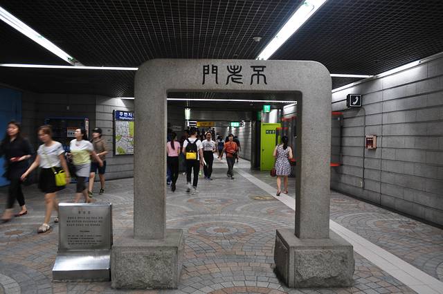 在地铁里看到的建筑. 对, 是在地铁里, 韩国好像无论走到哪都有景点. 这叫不老门. 看到这, 我又狠狠地被大脸. 因为身为中国人, 竟然看不出来这文字, 只能同旁边的英文介绍知道它叫什么. 不老门, 顾名思义就是走过这门以后就不会变老.