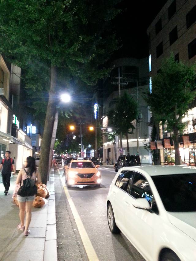 新沙洞林荫道真的不容易找, 只能凭着感觉走. 这里有很多酒吧(只是清吧, 跟弘大的有点不一样), 就是只供吃吃饭, 聊聊天. 如果说弘大是青春的味道, 那么林荫道就充满了白领的气息. 还有就是, 这里有一个名店街, 有lv, coach等奢侈品牌门店.