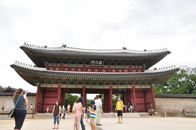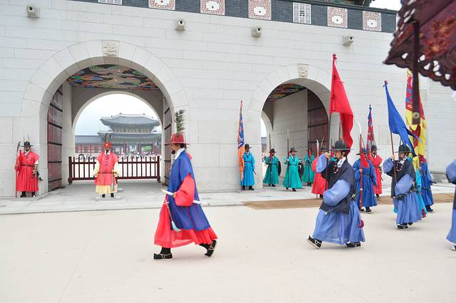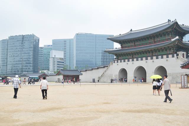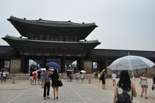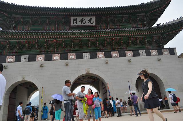 进入光化门, 右边就是景福宫的售票处, 真心想说韩国的景点门票都很便宜, 才3000won, 相当于在这里买一条火腿肠的价格. 与中国的5a 景点相比, 真是实在. 景福宫就是韩国的皇宫, 但经过多次战争的伤害, 已经比以前缩小了许多. 因为韩国在1443年以前是没有自己的文字, 一直都是借用中国语, 所以景福宫以及所有的皇宫写的都是中文. 走进景福宫以后, 还以为自己在中国呢.