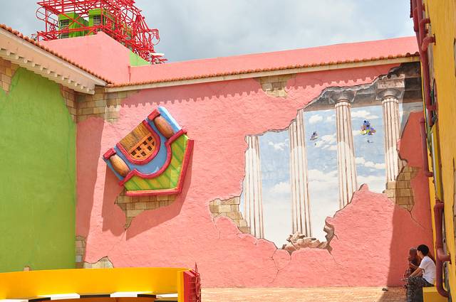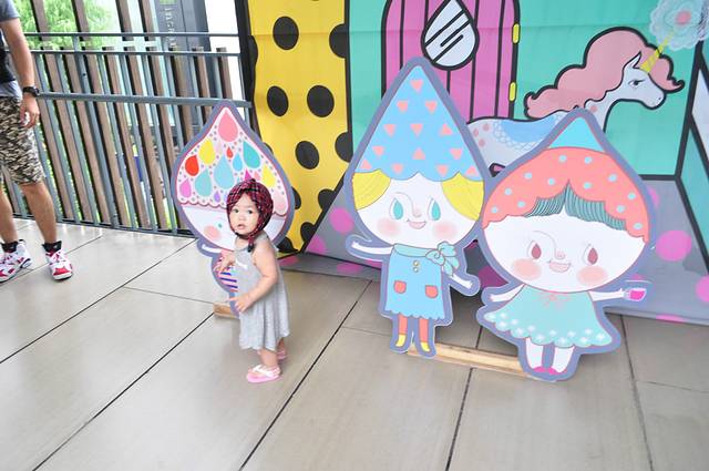 在通道上很多这类型的摆设, 既是体现文化创意, 也能让旅客拍照留恋. 我们发现一个很萌的韩国小女孩在这里拍照, 赶紧抓拍. 与背景很浑然一片的feel.