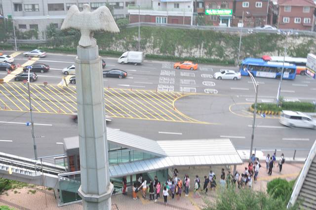 为什么要把回去旅馆这段都写出来, 因为我们两个奇葩在这15分钟的时间里面遇到了在韩国的第二个窝心的人. 这天从旅馆出发的时候, 我们坐地铁的时候很白痴地没有关注到是从哪个地铁口进入. 结果, 回去的时候我们也不知道从哪个口出去(韩国地铁出口超级多, 任何一个站都有十几个出口). 我们随意从一个出口以后, 结果发现迷失了, 无奈下向一个oba问路. 结果这个oba英文不太好, 没办法给我们指路, 不过他也很热心地带着我们回旅馆. 但是可以可能我们的旅馆不太好找吧, 就这样他带着我们在那个地方兜了差不多一个小时, 找到了旅馆, 感动得我们就差要跪下了.