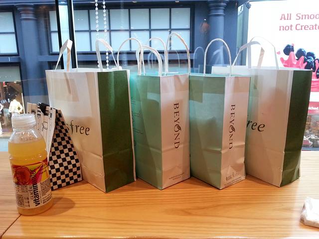 一轮血拼完, 中场休息. 买化妆品送小样就听说过, 但是送饮品还是第一次. 图中的维他命水就是在beyond消费送的.