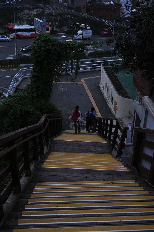 超级陡和长的楼梯. 但是相对于排队坐电梯上, 我们还是选择了爬楼梯, 主要是因为时间花费相差不大, 还可以减肥. 哈哈哈哈哈哈...