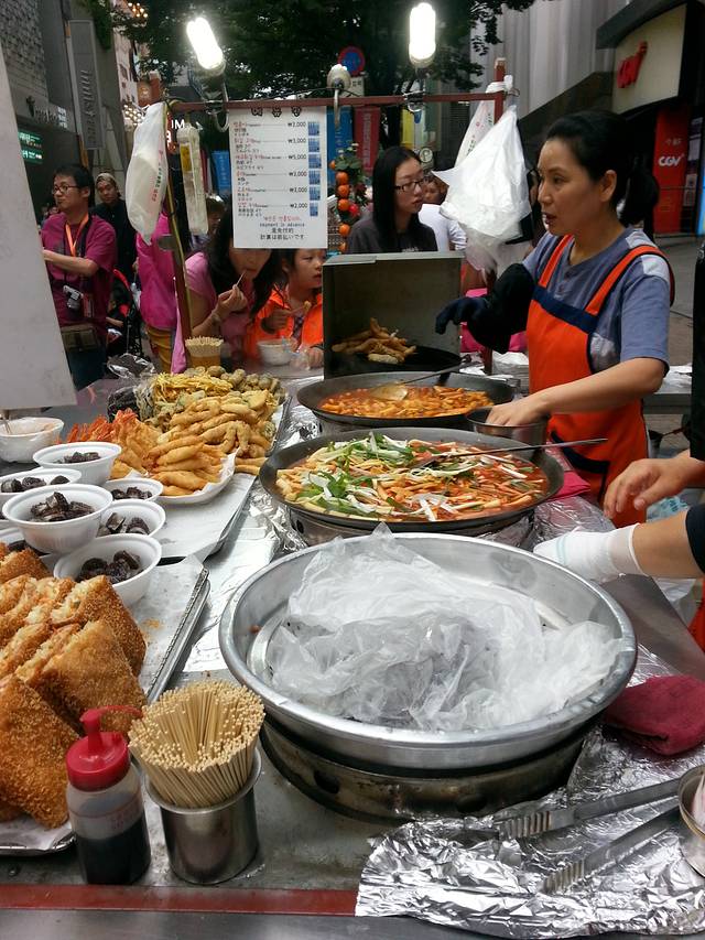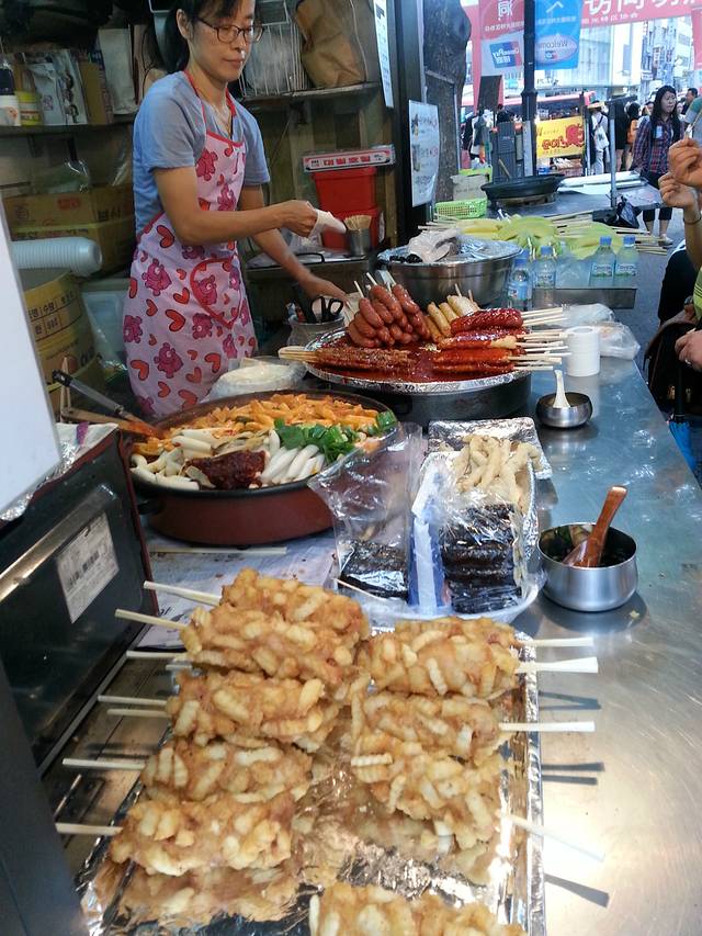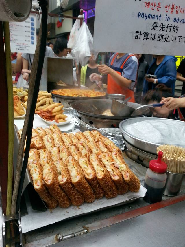 晚餐就是在明洞的路边摊解决. 图中的炸薯条包裹火腿肠, 很好吃, 是我的大爱.