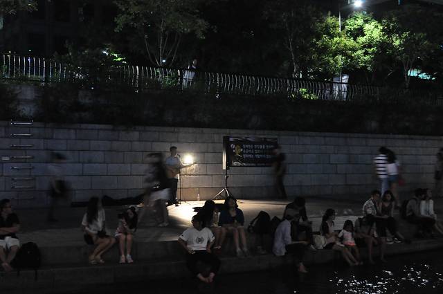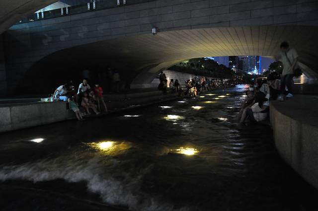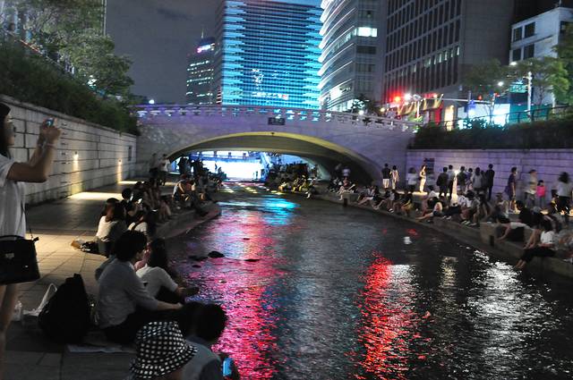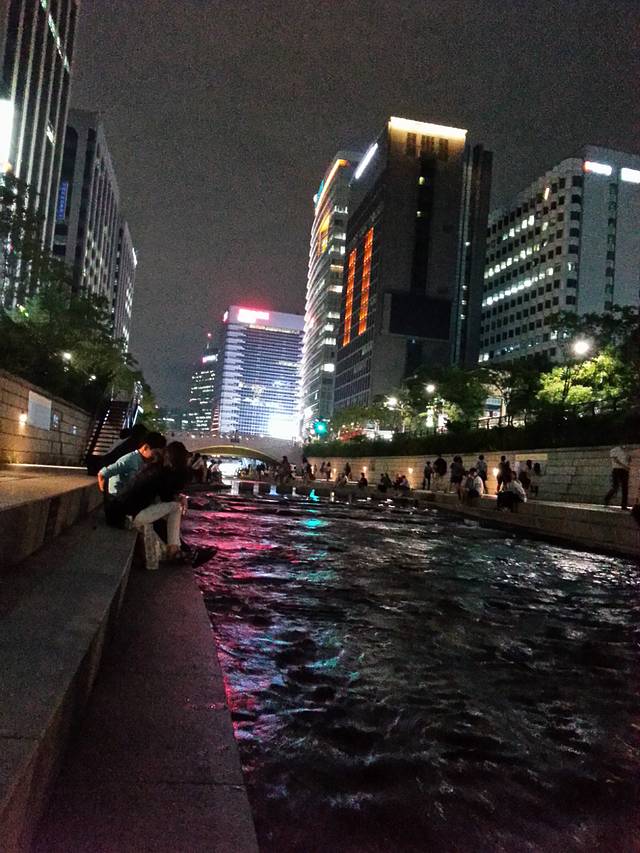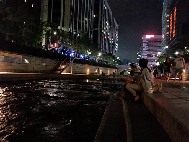 离开光化门没走多久, 就到达了清溪川. 可惜当天下雨, 不允许下到溪边. 我们也只能抱憾而归. 出发去东大门食晚饭了.