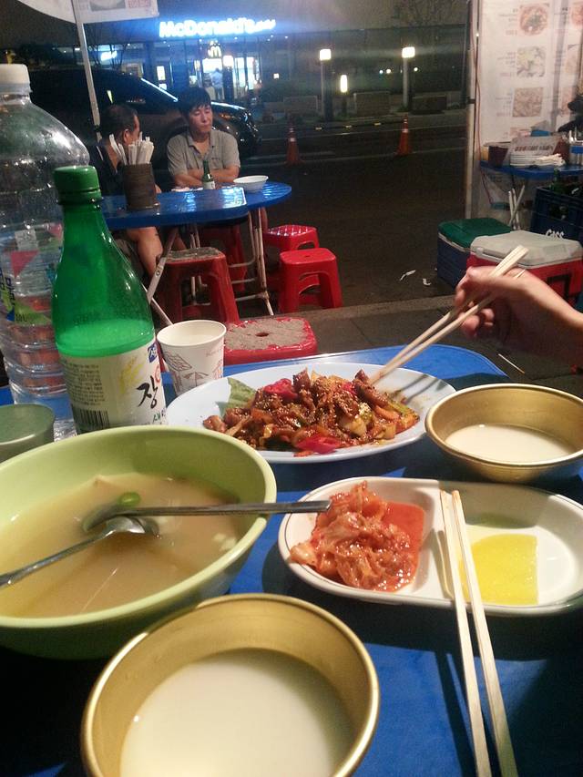 在酒店楼下的路边摊吃宵夜. 那晚很冷, 老板oba很窝心地拿出两件外套借给我们披着. 离开时, 热情地跟我们hi five, 还说是"see you tomorrow". 韩国的oba, 你们真的一定要对我们那么好吗?