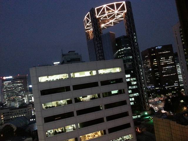 在酒店的窗户看外面的办公楼. 此时已经晚上九点多, 大多数办公室里还开着灯, 里面还坐着努力工作的人们. 难怪都说韩国人是加班狂, 这是真的.
