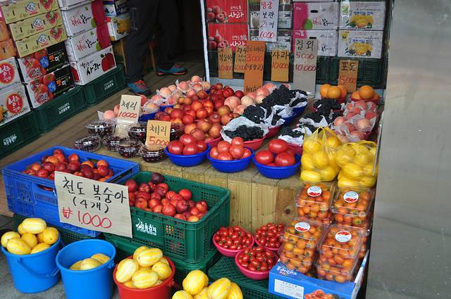一路上, 看到的水果店. 韩国的水果好像都是一份份地卖, 价钱不便宜. 他们的水果真的色彩鲜艳地就像假的一样, 吃下去不知道是不是特别甜.