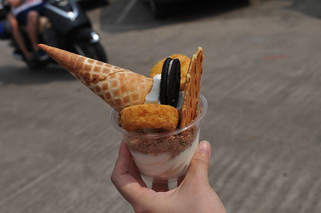 很丰富的雪糕. 如图所示, 5000won/个. 雪糕是酸奶味的, 吃完也不会觉得很腻.