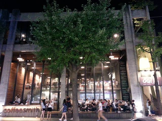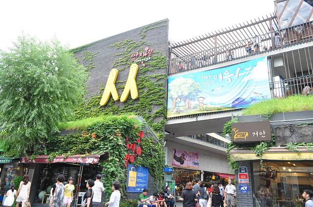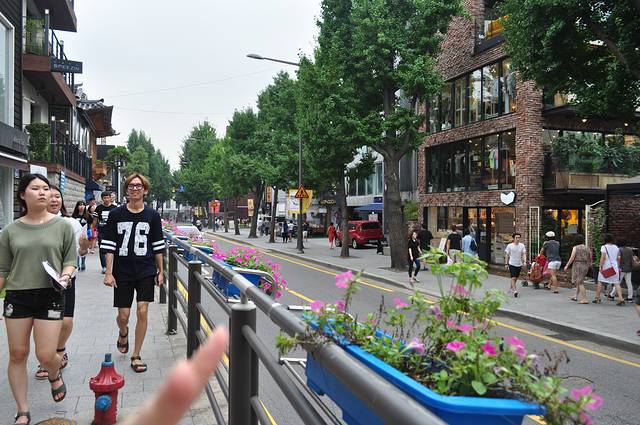 弘益大学是一个极具文艺的学校, 附近的商业街和酒吧街也是红遍首尔. 坐地铁2号线到达弘大站9号口出. 到达弘大站, 你就会看见一大波的年轻人, 顺着他们的方向走, 你就会顺利地找到弘大了. 弘大附近的商业街道有超级多的文艺青年, 一路上看到街头人像彩绘, 卖唱, 手工艺品等等, 但由于我们去的时候实在太多人, 没办法拍下图片. 酒吧街超级出名, 后面还会提到.