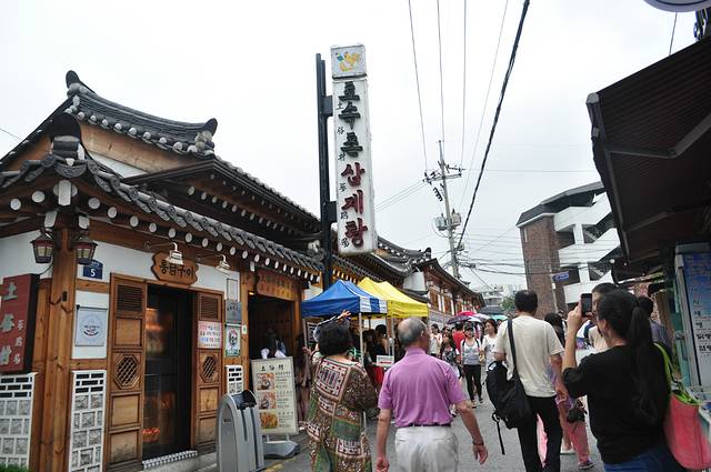 下了机场大巴已经八点多, 历时一个多小时的车程, 还有一晚未睡, 几乎把我们的精力榨干. 大街上来来往往的都是赶着上班的白领, 就在我们拖着行李彷徨地拿着地址寻找旅馆的时候, 有一个oba很亲切地跟我说"What can I do for you". 那一刻真心被融化了, 我们完全没有戒心要提防什么, 就乖乖地看着这位oba打电话跟旅馆的工作人员联系, 并且步随他到达我们提前预订的旅馆. 那位先生的样子, 我已经忘记了, 但是他的热心, 我久久不能忘怀, 瞬间对韩国加满分. 在旅馆稍作休息以后, 已经中午了, 我们又在出发去觅食.选择了据旅馆比较近的仁寺洞. 仁寺洞是结合了韩国传统及现代文艺的商业街, 这里隐藏了很多传统的美食和手工艺品. 初到韩国, 这里确实给了我们很多有趣的回忆.