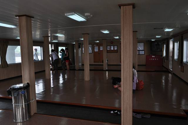 这里的船仓里没有左右, 铺上木板榻榻米, 乘客可以坐或睡在上面, 以作休息. 但注意要脱鞋. 如果不想待在室内, 也可以走到甲板上看外面的风景.