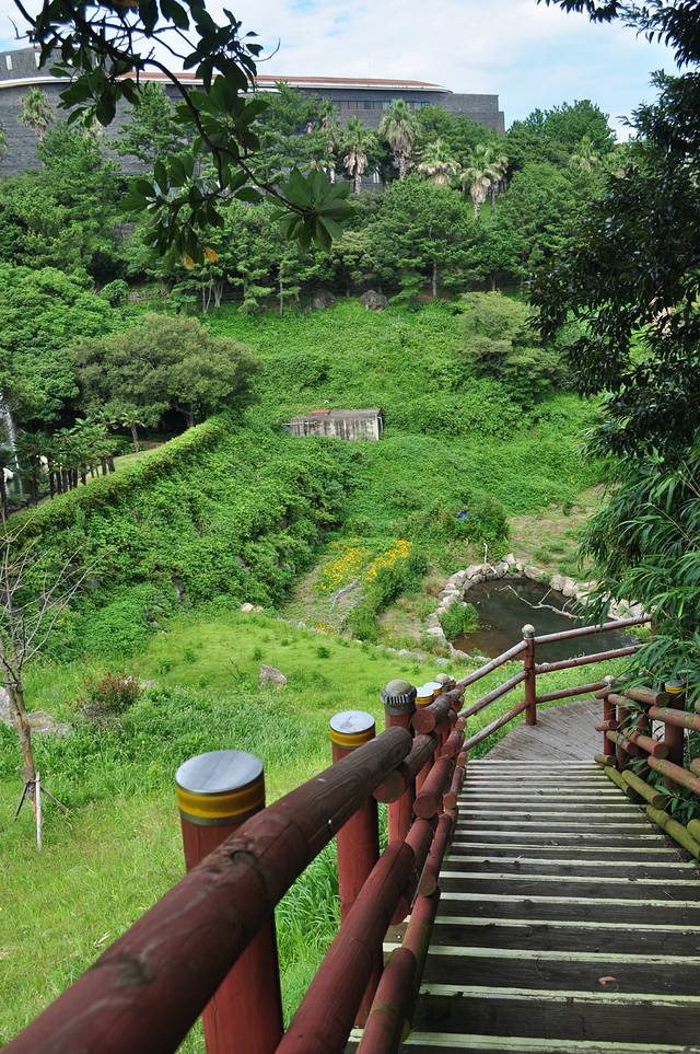 由于住在济州市区, 去中文旅游区也有点距离, 坐上公交历经了一个半小时才到达. 刚到济州的时候, 以为中文旅游区是为了中国人开发的一个旅游景点, 去了才知道人家就是叫"zhong mun", 翻译过来就叫"中文", 跟中国没有半毛钱关系. 来到济州, 最大的感觉就是没有首尔那么多人, 也没有那么多中国人, 虽然走在路上偶尔还是有听到一些中国话. 在济州, 英语普及率很低, 所以, 一些必要的单词要掌握. 不如说, 你要到的目的地, 你就要学会用韩语表达. 济州的公交是按段收费的, 所以你要跟司机说你要到哪里, 才用T money卡或现金付费. 一些比较多人上下车的车站, 报站录音会有韩语, 英语, 日语, 中文四种语言播报, 所以去大型的旅游景点, 你就不用担心坐过站. 但是, 不著名的车站, 就只会用韩语(偶尔有英语)报站, 这时候你就要打起精神留意自己要下车的站了. 从住的地方到中文旅游区车费是3300won/人. 进入中文区后, 有一个旅游咨询处, 在里面可以拿各种各样的博物馆简介还有景区的地图, 还有会中文的工作人员解决你的疑问, 可以问清楚要游览的目的地方向再出发.